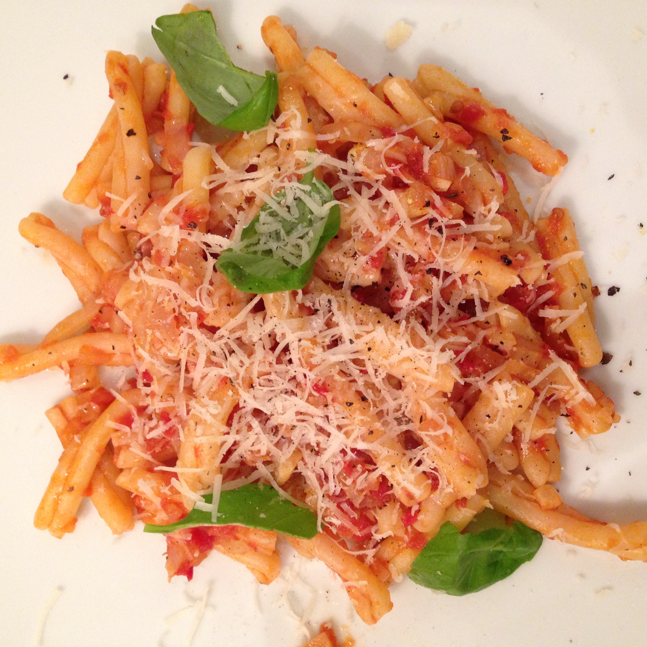 Strö över bordssaltet och låt saltet dra ur vätskan ur lök och tomat. Enligt originalreceptet skall det stå över natten. Jag lät det stå i sex timmar, sen hällde jag av all överflödig vätska.